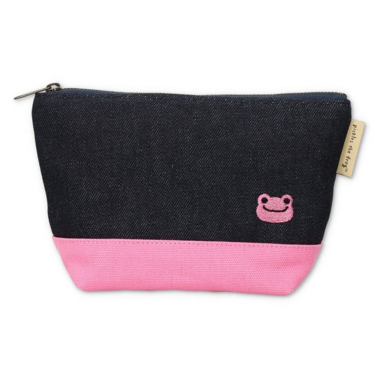 【かえるのピクルス】岡山デニムツートンマチ付きポーチ(ピンク)CKKP026-1