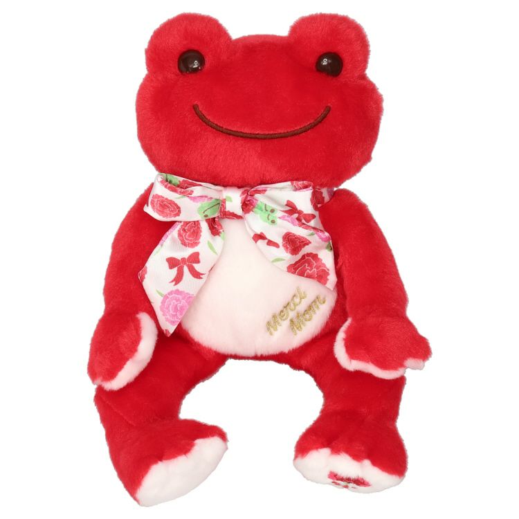 お腹には「Merci Mom」、左足の裏にはカーネーションの刺繍があしらわれています。